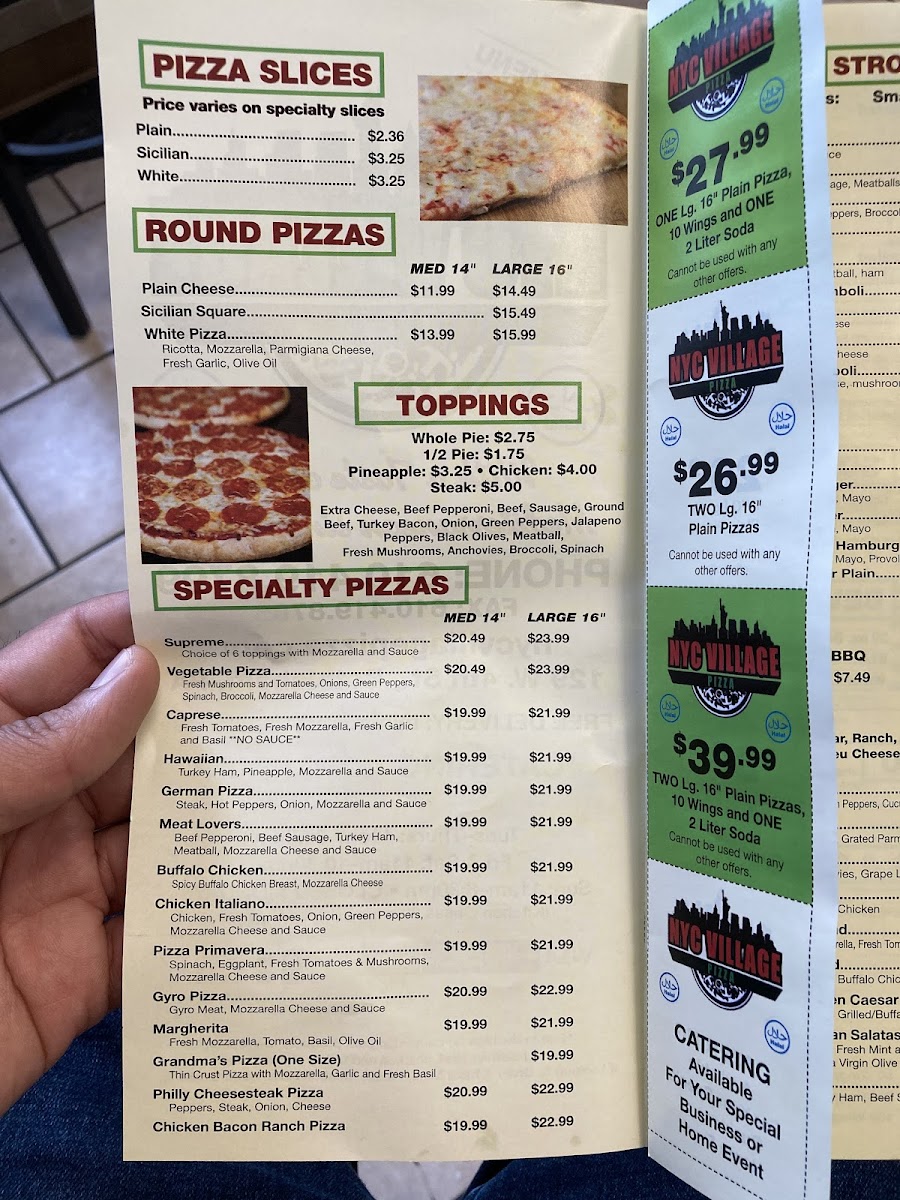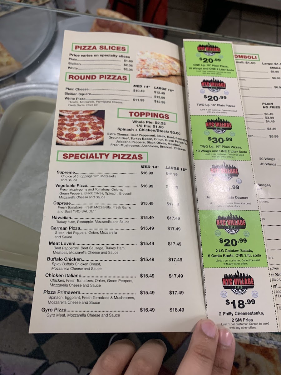 Pair your meal with garlic knots—light and bursting with flavor—or explore their decadent desserts like Baklava and New York Cheesecake. Late-night cravings? NYC Village Pizza has you covered, making it the perfect spot for both casual outings and special gatherings.